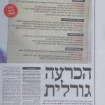 צילום קטעי עיתונות הוא עבודה סיציפית – מצד אחד אני רוצה לסיים את העבודה, כבר חודש וחצי אני מצלמת קטעי עיתונות שנאספו לאורך 5 שנים, מצד שני אני מכורה לקריאה, ואקטואליה ידועה כדבר הכי קל לקריאה – התחברות מיידית. בכל עיתון צריך לחפש קודם את הקטע הרלוונטי ואז להצמידו לקיר הכי ישר שאפשר ולצלם. התאורה כבר מכוונת ו-הופ – לכתבה הבאה.