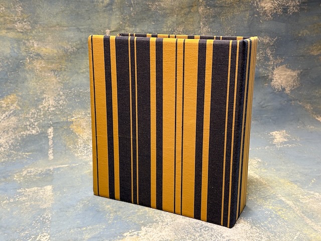 קלסר בכריכה קשה עבה מחופה בבד פסים צהוב וכחול, כותנה עבה ויפה. שידרה ברוחב 10 ס״מ יכולה להכיל הרבה מסמכים, בגודל 29.5סמ גובה על 21סמ רוחב.